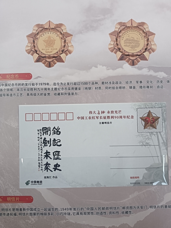 张海江选送的藤书书法作品,以其积极向上的内容、满满的正能量、独特的风格以及深厚的艺术功底,在众多参选作品中脱颖而出。专家们在审查商议后一致认为,该作品无论是从艺术价值还是文化内涵上,都与“伟大长征,永放光芒 —— 纪念长征胜利90周年” 这一主题高度契合,因此决定将其正式纳入素有“国家名片”之美的主题邮品的注册出版工作中。特授予“国礼艺术家”“共和国红色文化楷模”荣誉称号。此次“伟大长征,永放光芒——纪念长征胜利 90 周年”主题邮品活动由北京巨匠丹青书画院、中国集邮艺术网、国礼艺术家邮品制作组委会共同举办。活动旨在通过邮票这一特殊载体,弘扬长征精神,传承红色文化,让更多人了解和铭记那段波澜壮阔的历史。