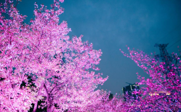 武汉西北湖夜樱璀璨 市民赏花络绎不绝 二维码